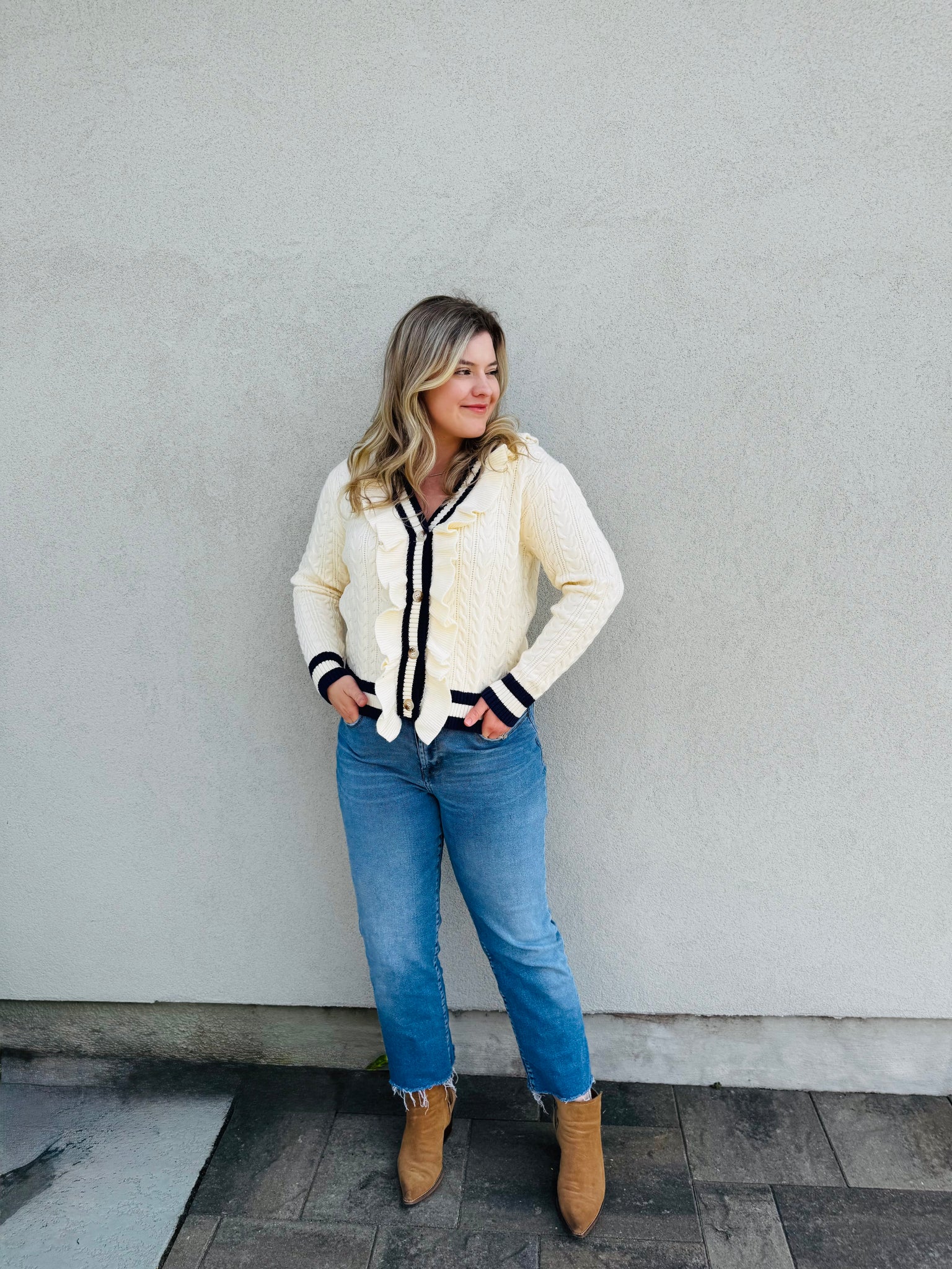 Cozy up in the charm of the coast with our Nantucket Nights Sweater. Soft, warm, and effortlessly stylish, this sweater pairs perfectly with jeans for a relaxed evening or layered for crisp fall nights. With a timeless design and a hint of nautical inspiration, it’s your go-to piece for chilly nights by the water or anywhere you want to feel that breezy, coastal vibe.